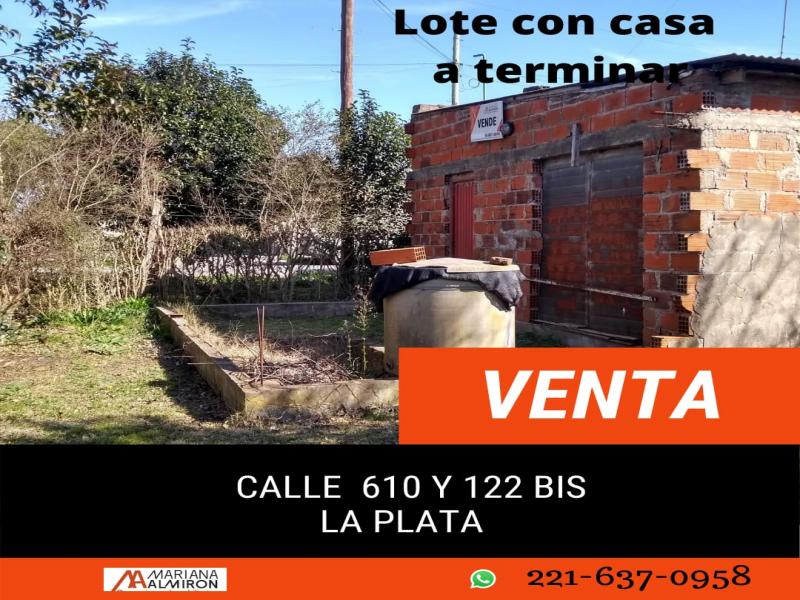 | Lote de 10 x 35, con casa a terminar de un dormitorio, parque con arboles frutales. Toma vehículo |